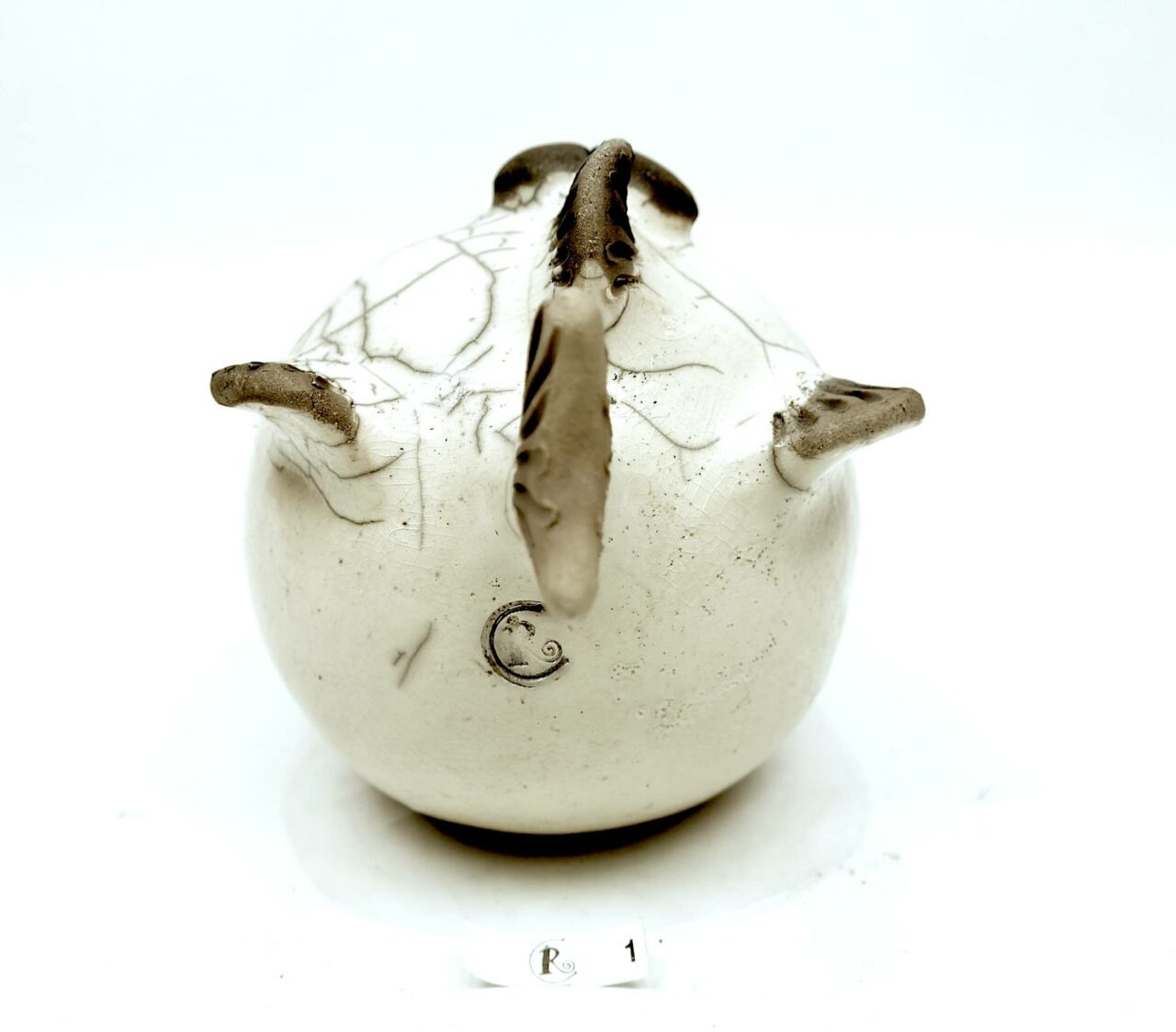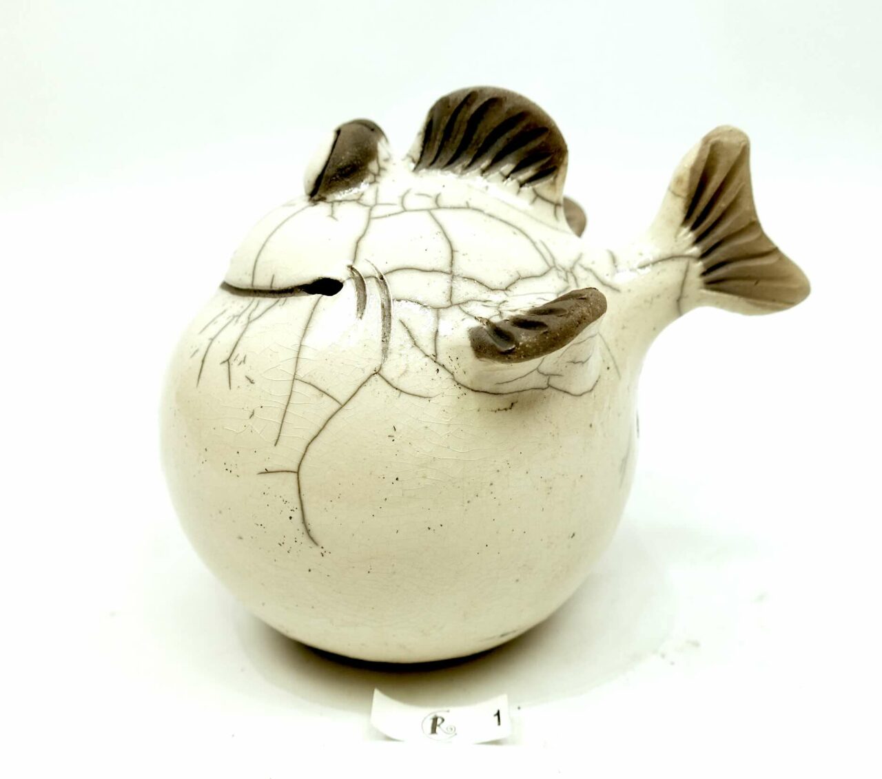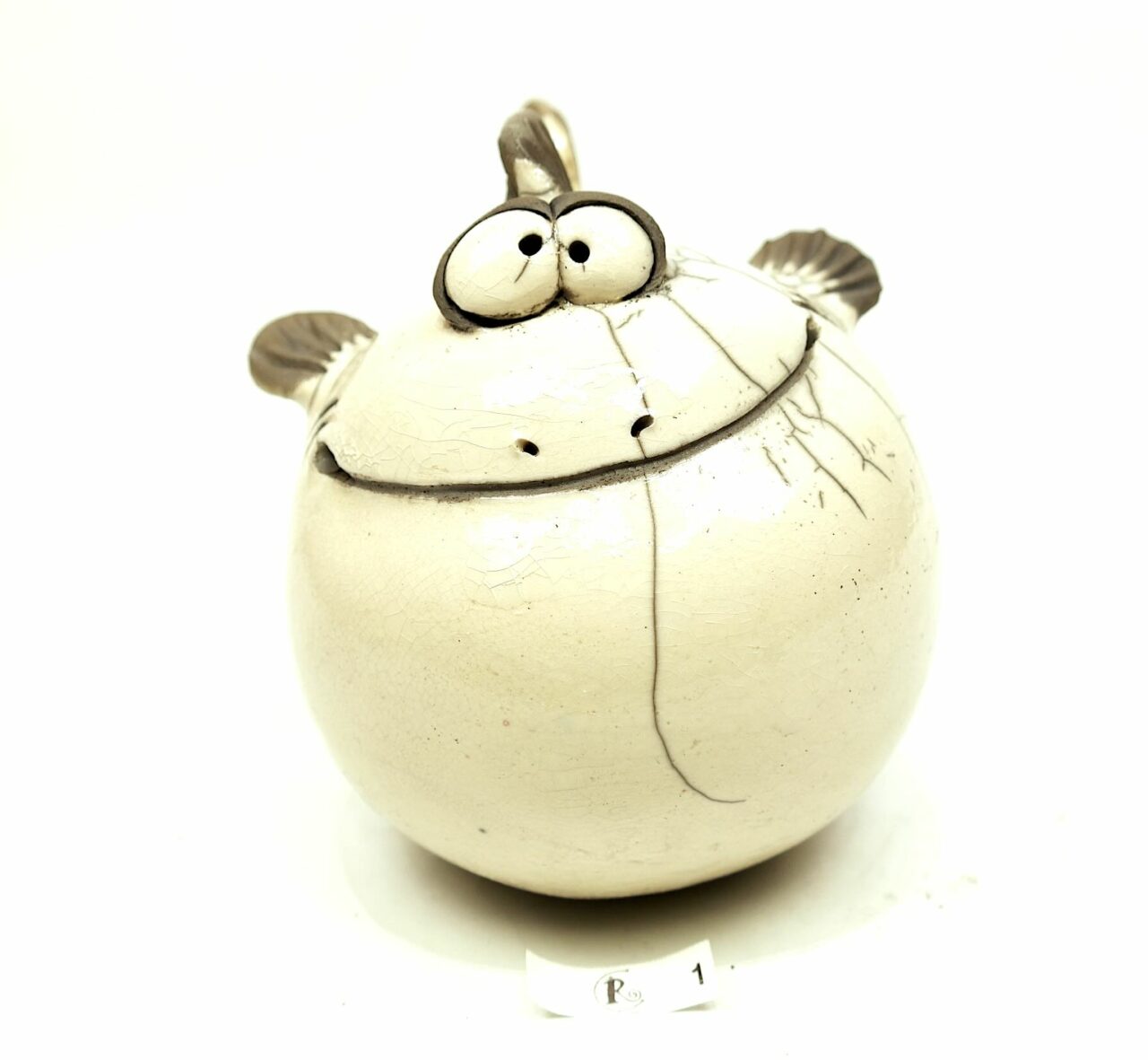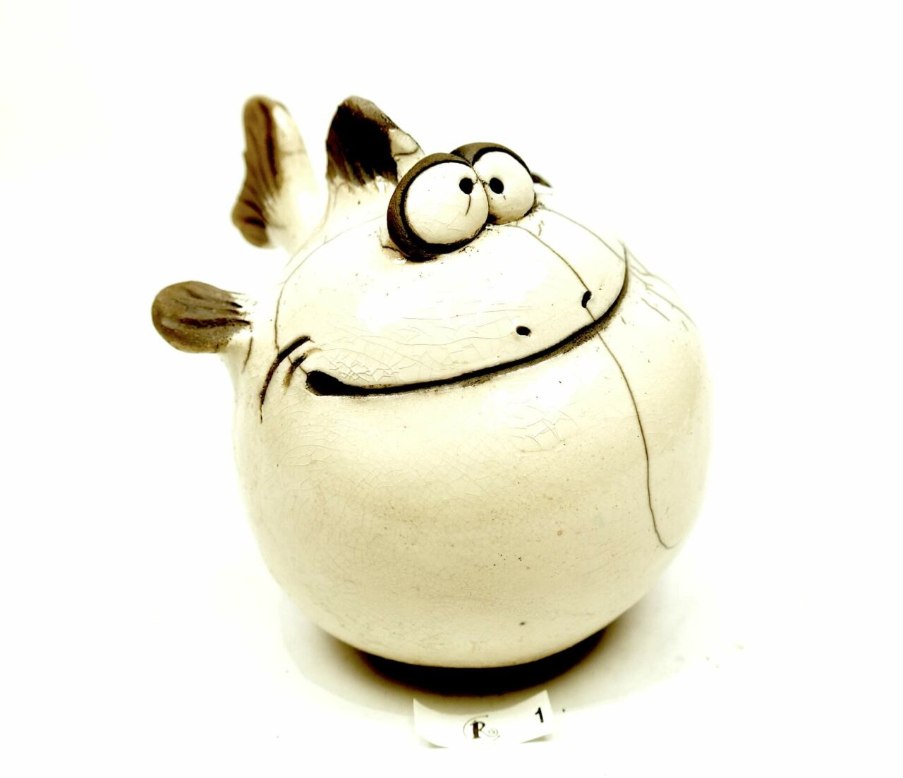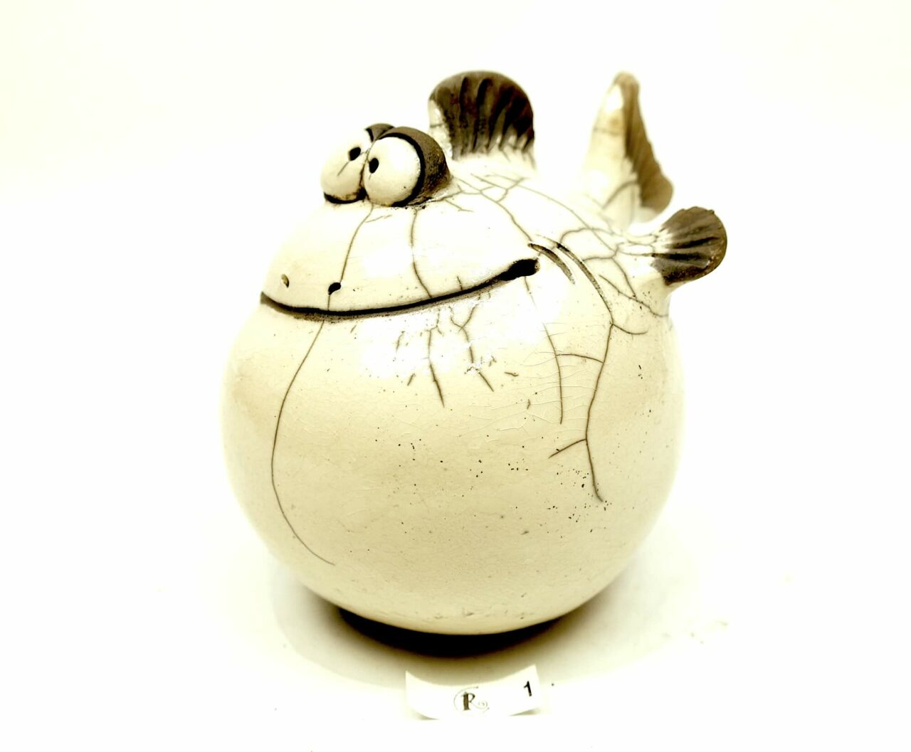 Diese lustige Figur ist im Raku-Glasurbrandverfahren hergestellt worden.