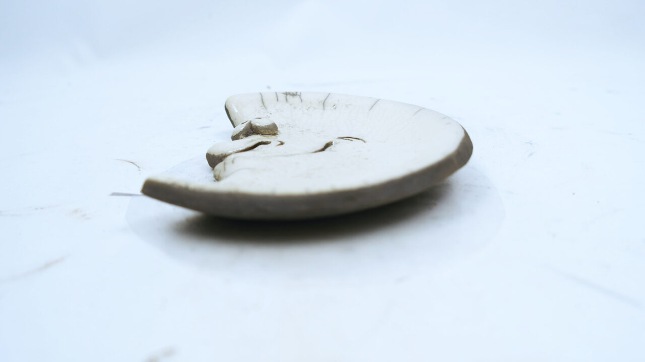 Diesen lustigen Teller hat Rina handgeformt und im Raku-Glasurbrandverfahren vollendet.