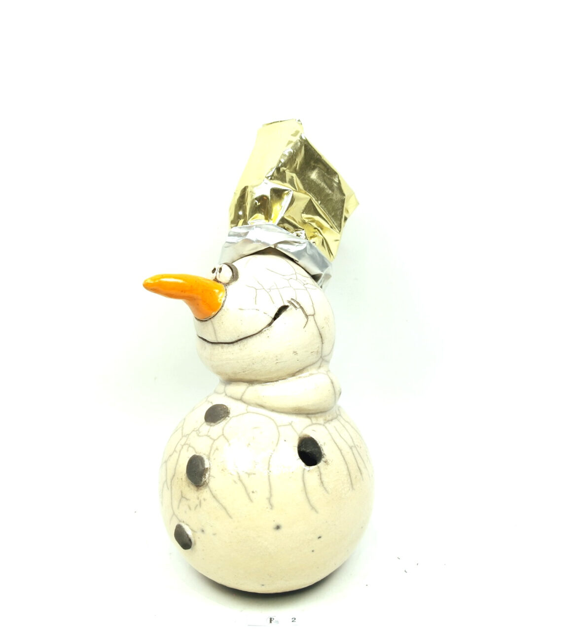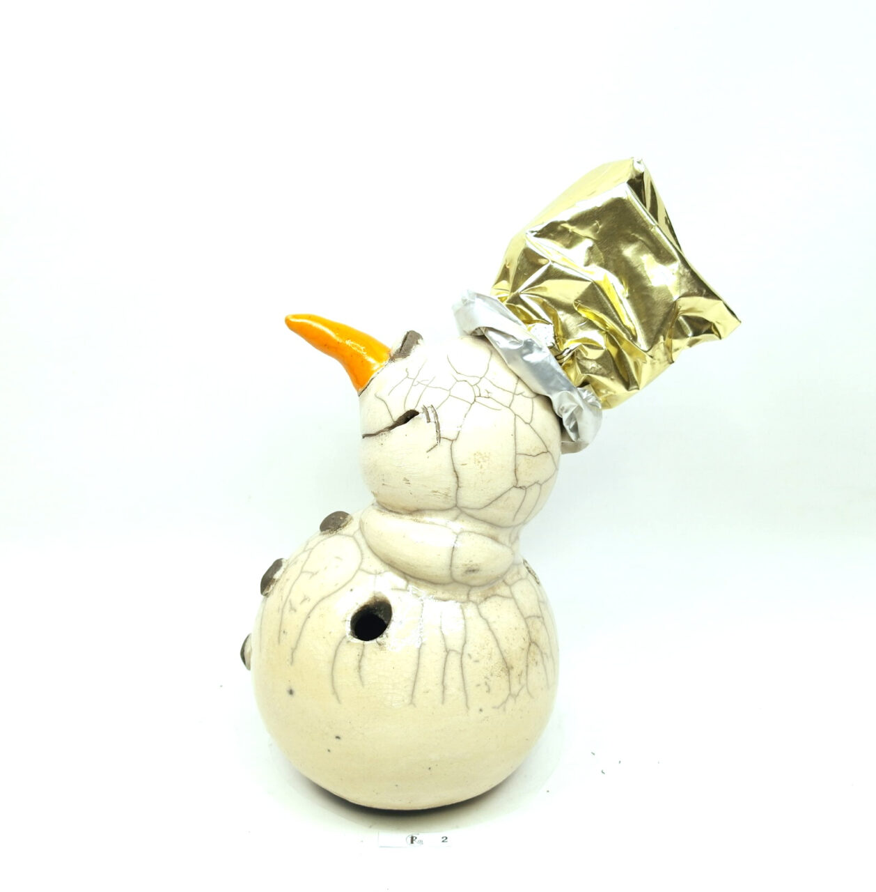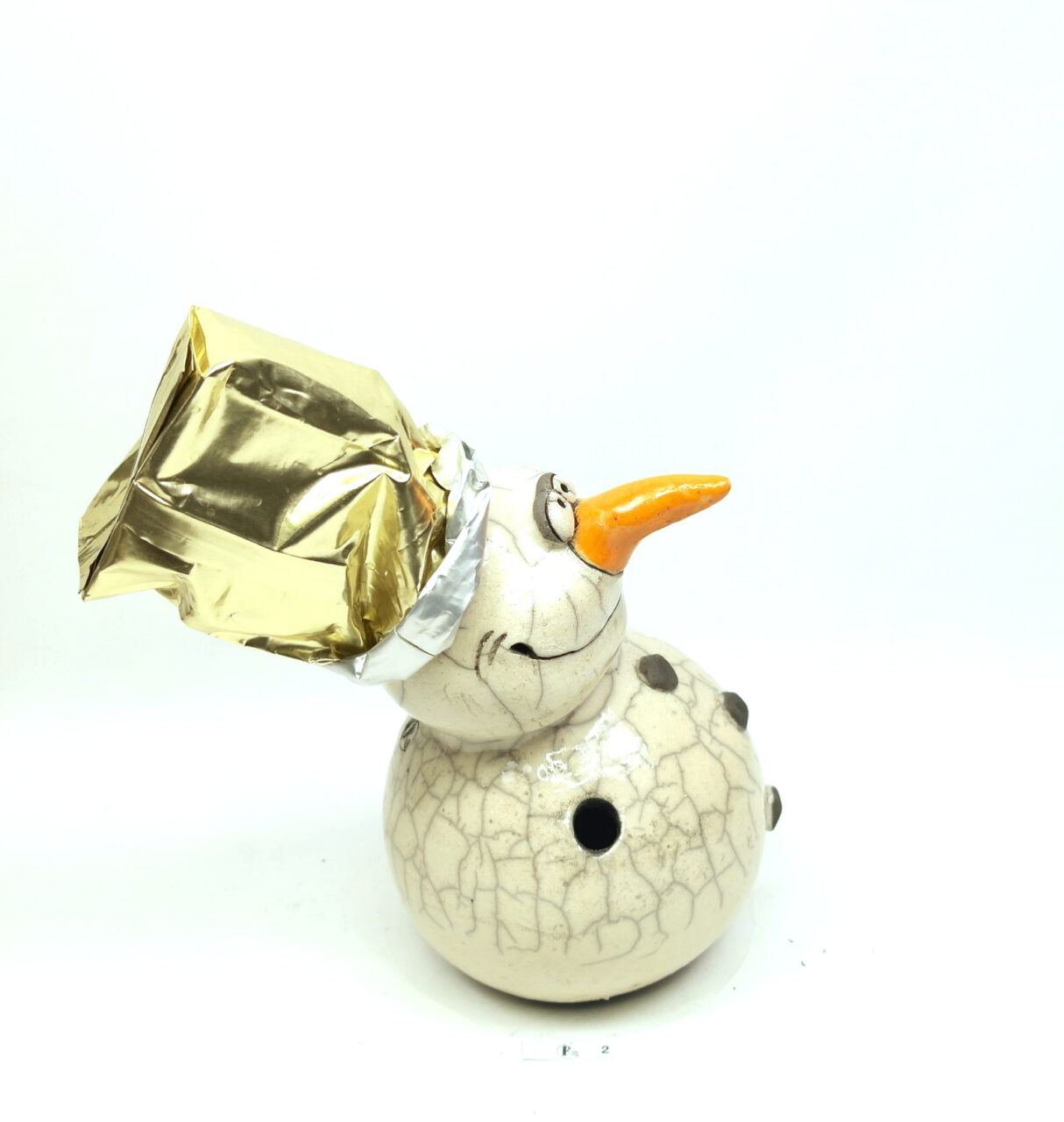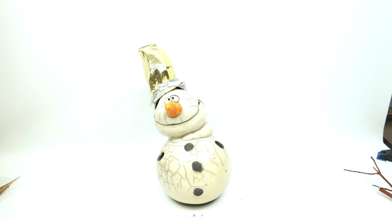 Damit die Blechtüte, seine Kopfbedeckung auch gut hält, hat der frostige Kerl ein Horn auf dem Kopf.